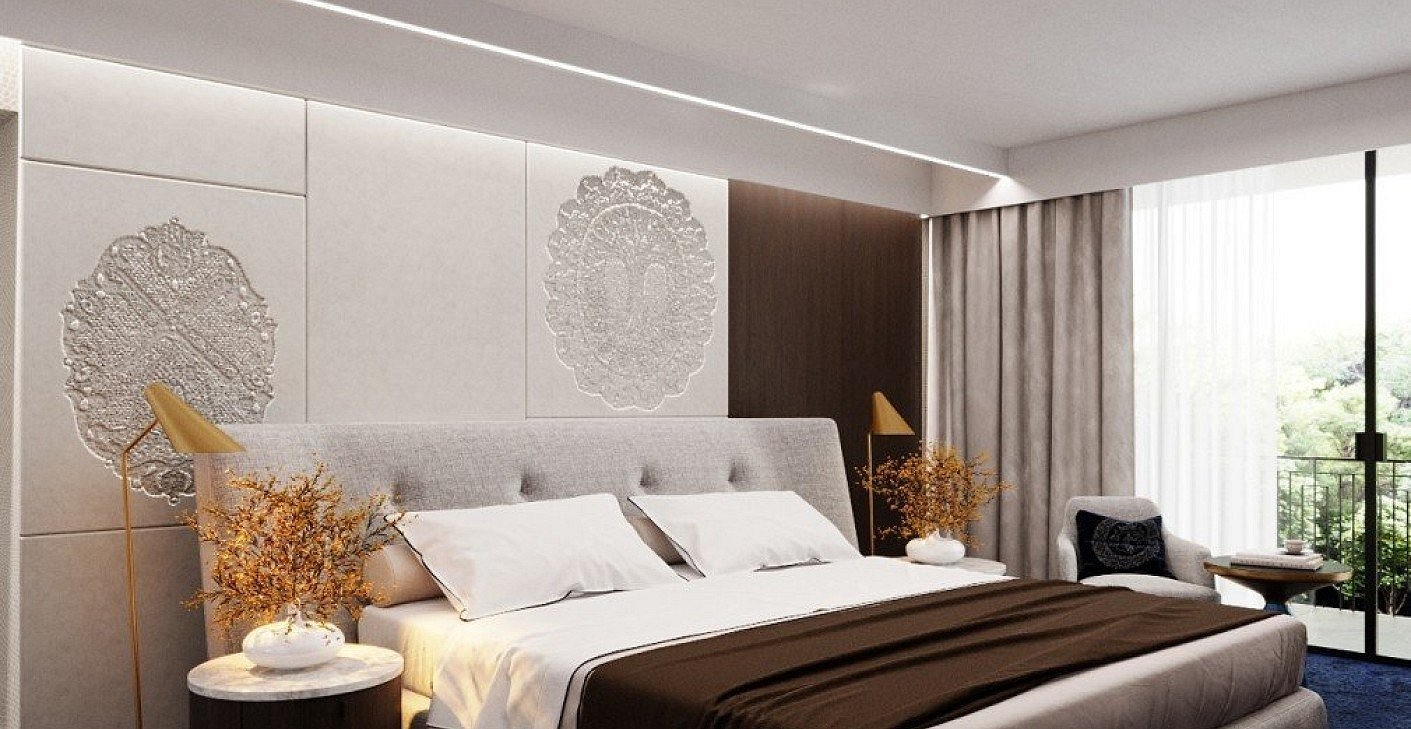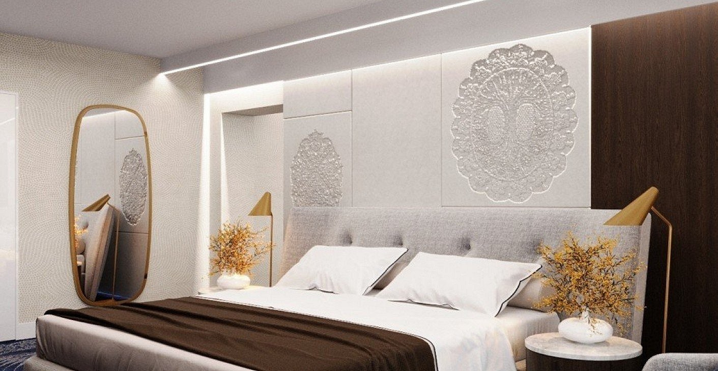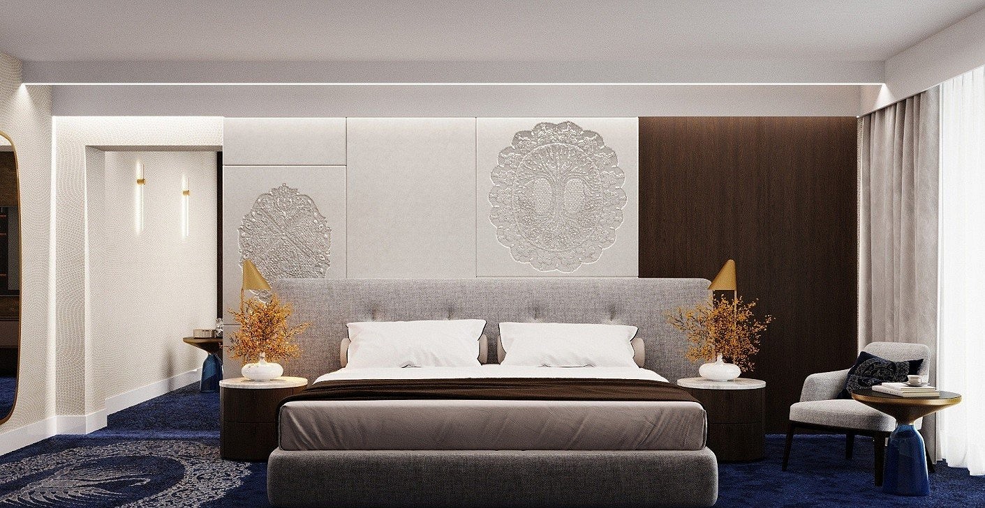 I created this work for a national competition announced by LOSZ, the Ministry of Rural Development, and the Halasi Lace Foundation. As a designer from Kiskunhalas, it was natural for me to participate in this prestigious competition. I envisioned my concept in a luxury suite of a Halas hotel, showcasing the delicacy and lasting value of Halasi lace on furniture and textiles within a luxurious setting. I believe it turned out to be an excellent work that I am very proud of.