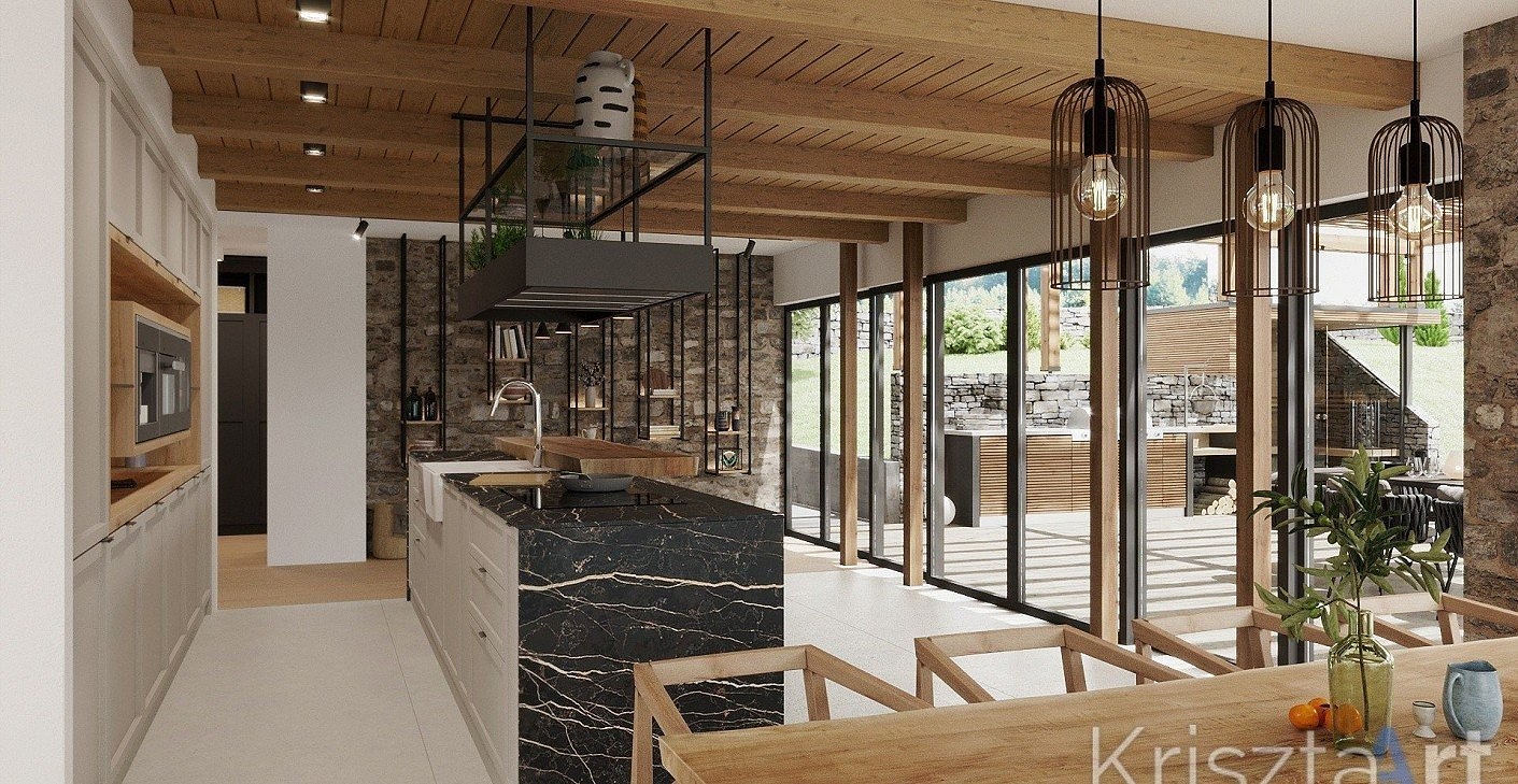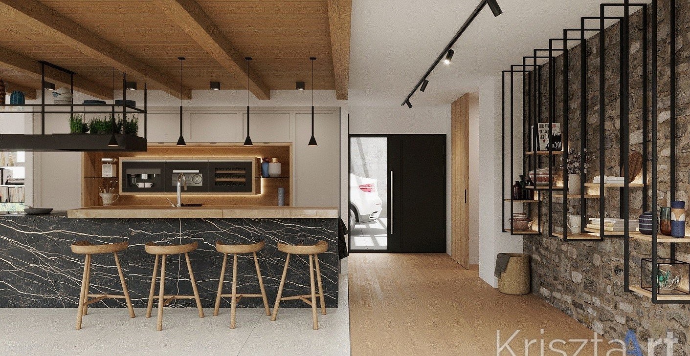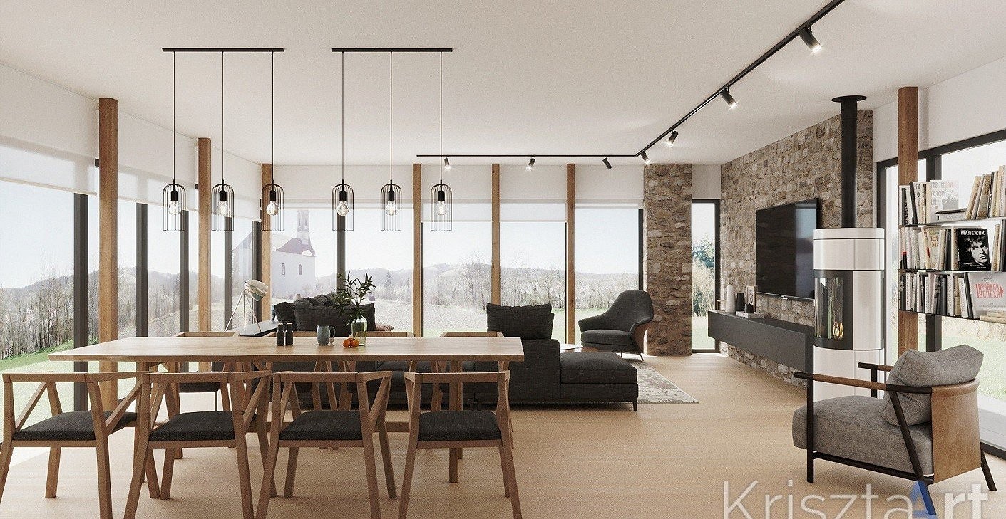 In this project, I was tasked with designing the complete interior of a weekend house being built in the small village of Kisszékely, Tolna County, following the “Enjoy my home” concept. The house was designed for two adults and two children, incorporating urban and contemporary style elements, while also subtly introducing traditional features inspired by historical design.