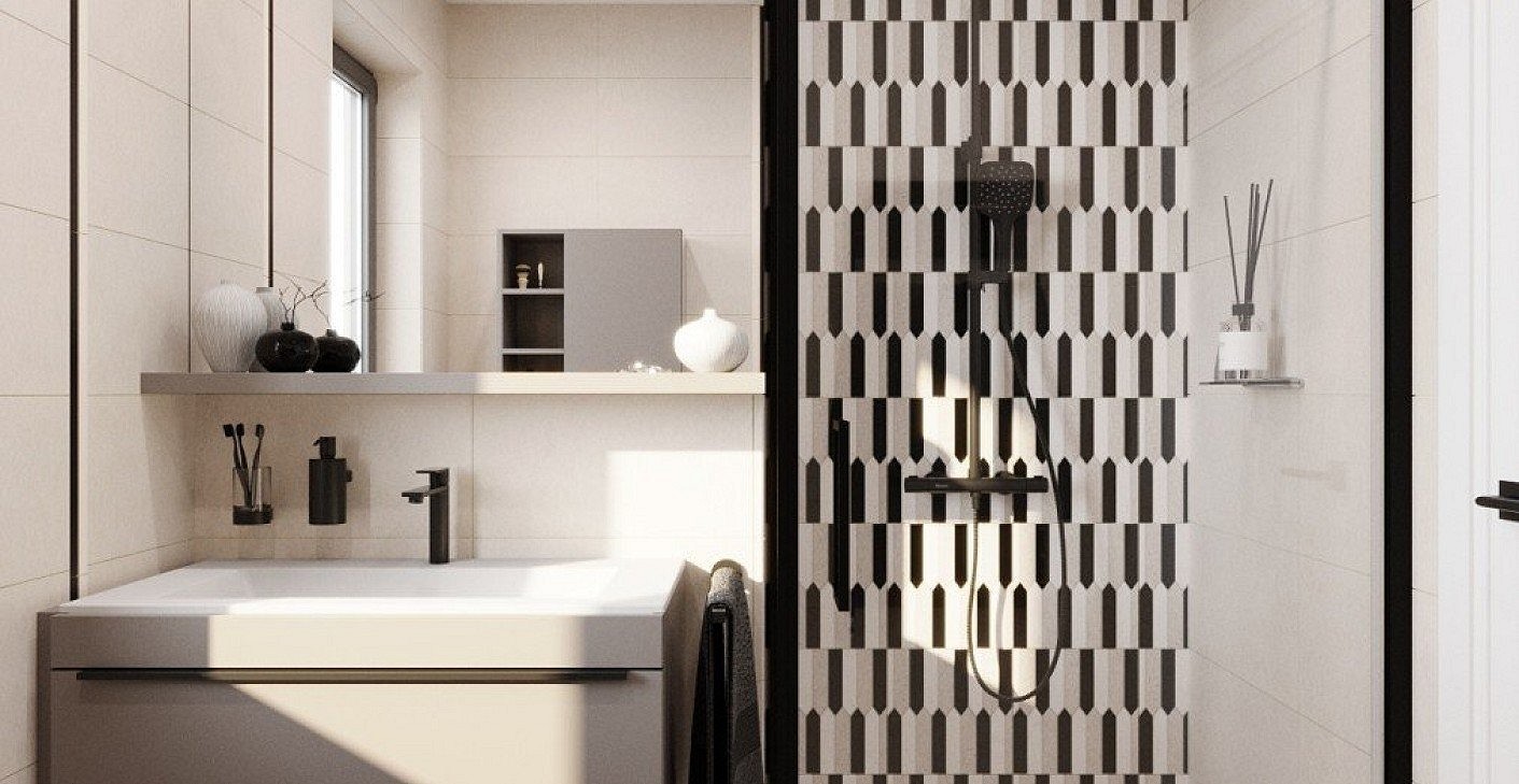 A couple living in the countryside asked me to design their small entryway and bathroom before renovation, ensuring both aesthetics and functionality. The bathroom is primarily used by the husband, so I designed it with a masculine look, combining light colors with touches of black. The entryway is also very small, and they requested adequate storage for clothes and shoes.