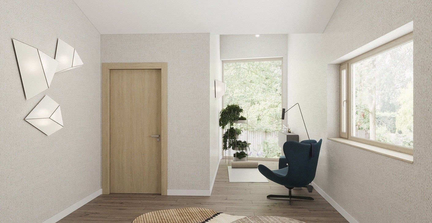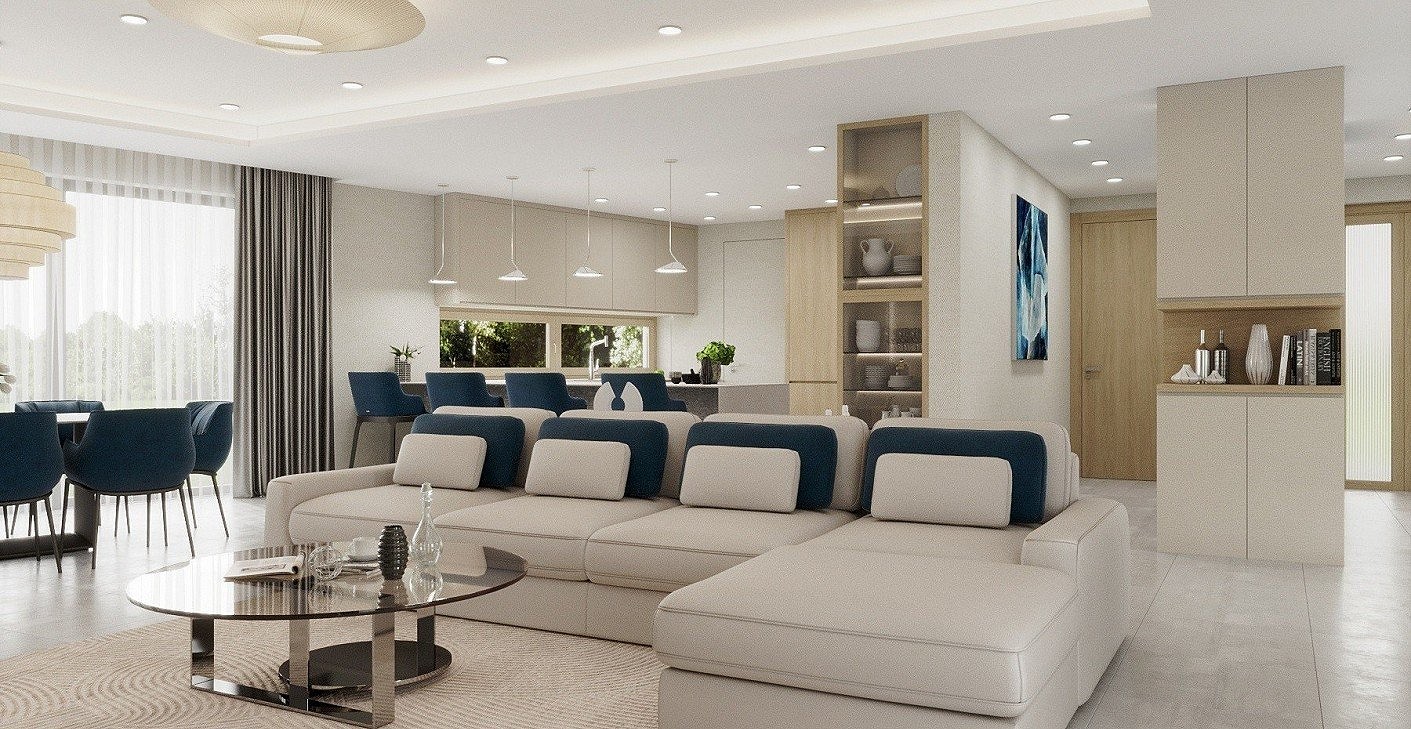 I designed the interior of a Nordic house being built on the outskirts of Budapest, blending Scandinavian and modern style elements with a cozy, livable atmosphere. Architecturally, the house has a very good layout with spacious living areas. In terms of materials and colors, I incorporated Scandinavian tones and textures, adding a touch of blue to enhance the ambiance. As with all my projects, the client’s personal requests were integrated. The second phase of the design will continue with the planning of the upper floor.