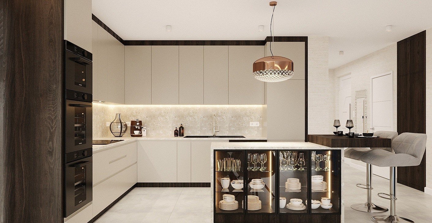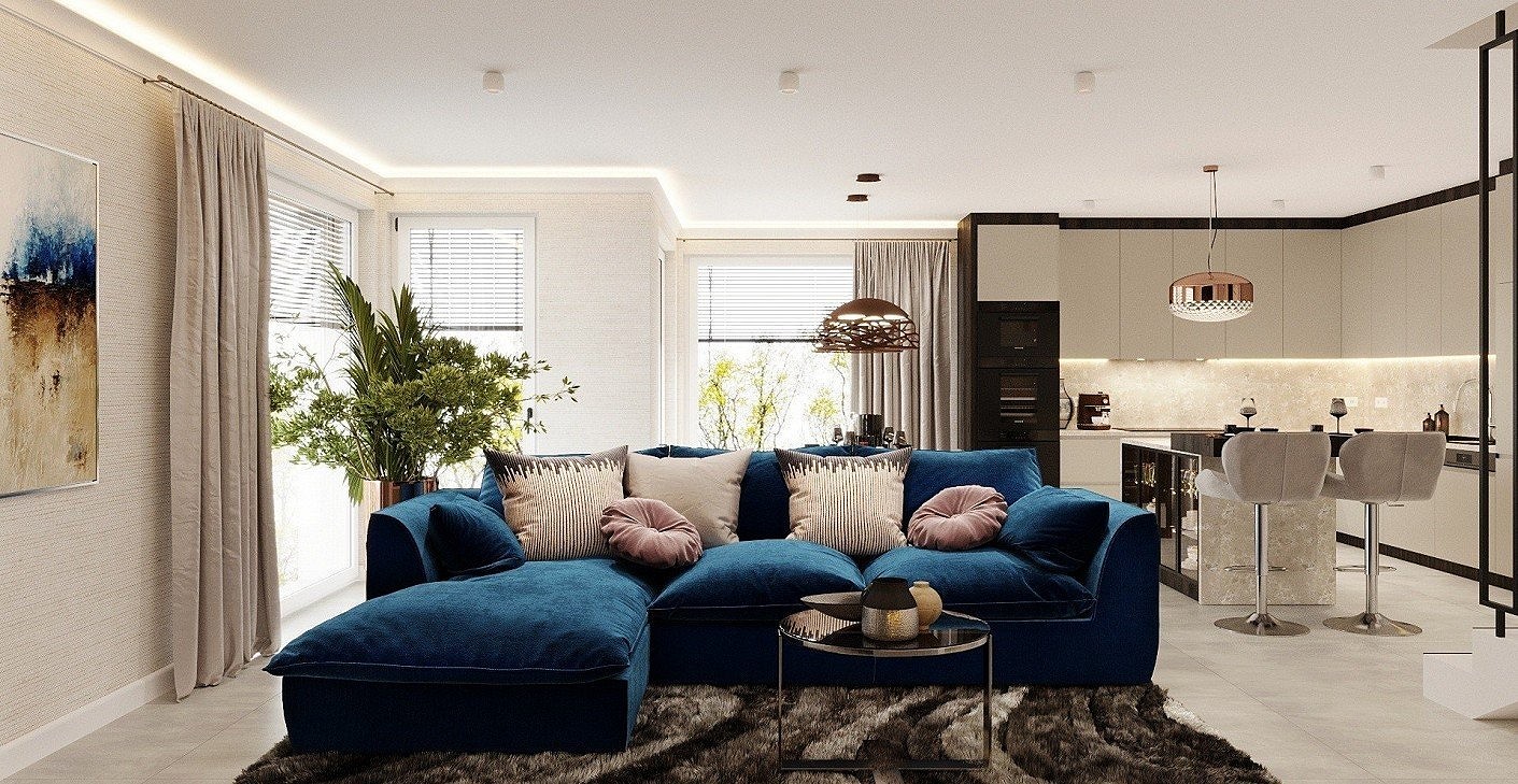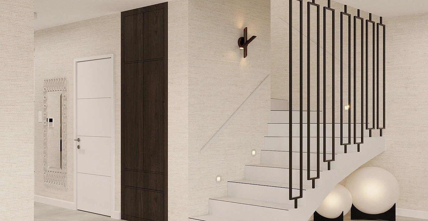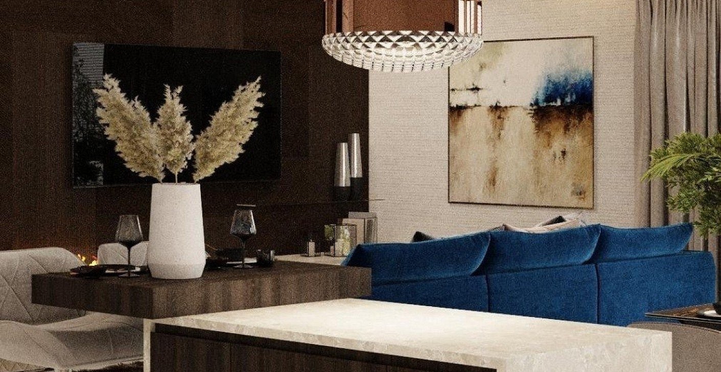 I was commissioned to fully design the lower level of a young couple’s apartment under construction in Üröm. A ceiling cooling system was installed, complemented by underfloor heating, so I had to take the outlets into account and adjust the entire interior design accordingly. The clients requested the use of warm brown and grayish-brown tones, seeking an elegant yet livable home, as their second child will soon be born in their new home. Logical spatial arrangement, harmonious colors, and materials create a unified design, with a special request to incorporate blue, accented with a touch of powder pink.