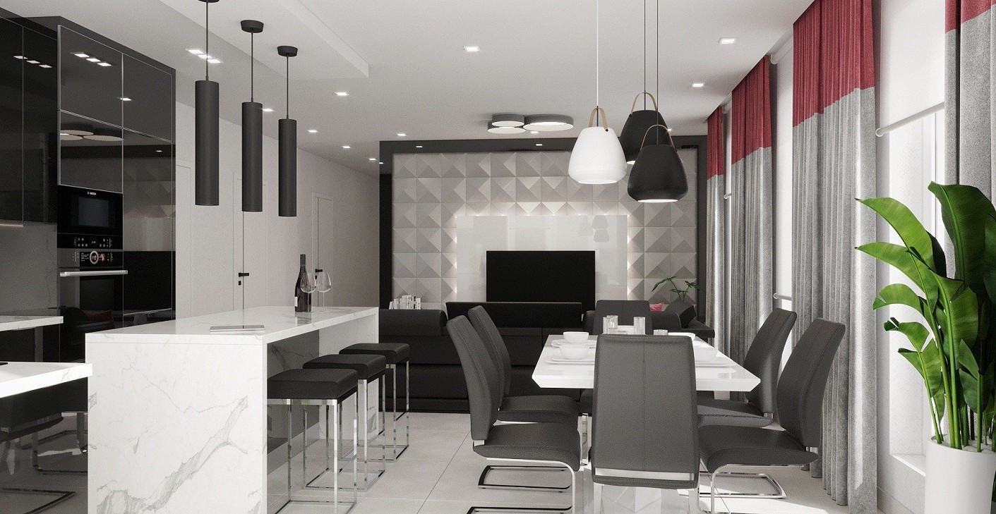 Feketén-fehéren, mert bizony valaki így szereti. Ez a két szín megunhatatlan, örök divat marad , sokat használjuk a belsőépítészetben. Fiatalok első otthonuk belsőépítészeti tervezése látható egyedi igényeikre szabva.