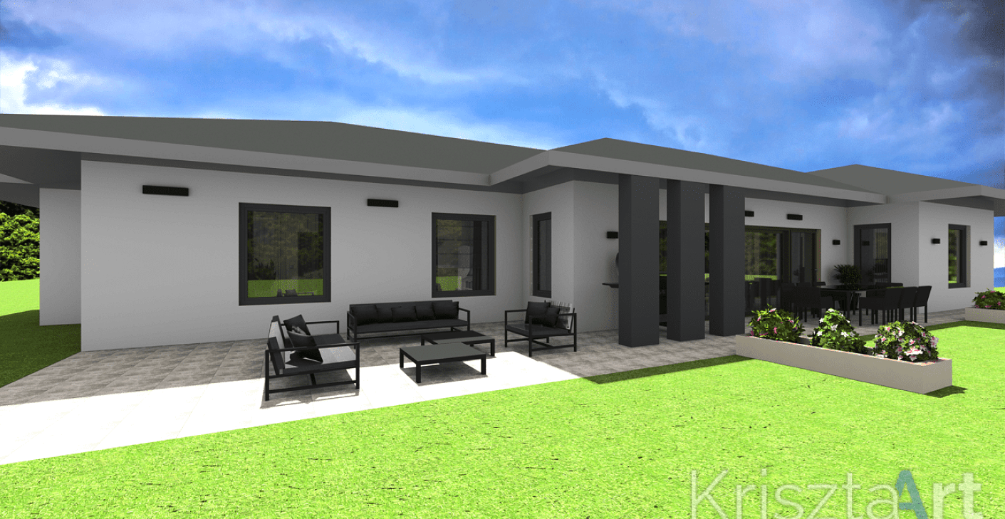 Harmincas éveikben járó, gyermek nélküli házaspár 164 m2-es családi házának teljes megtervezése.