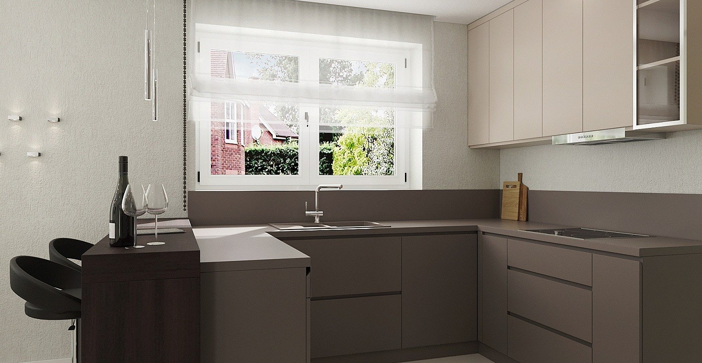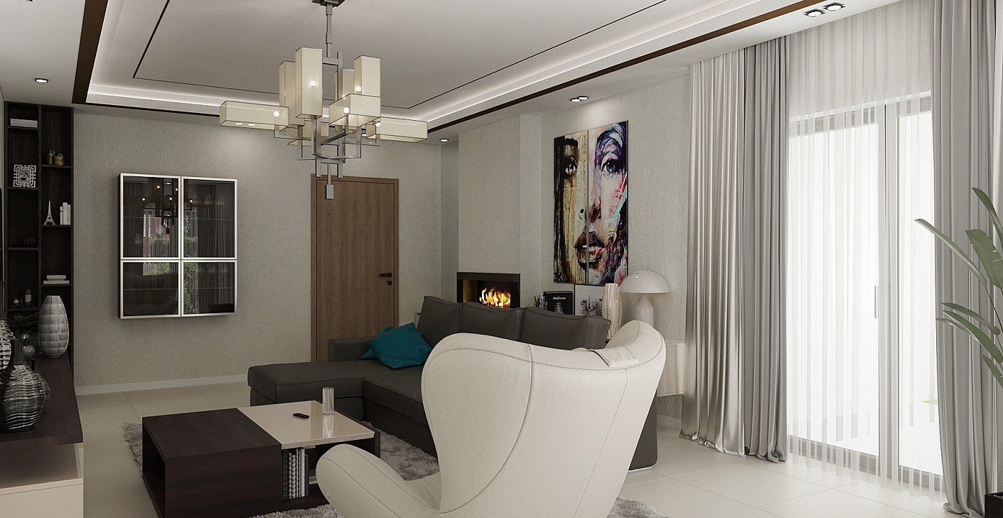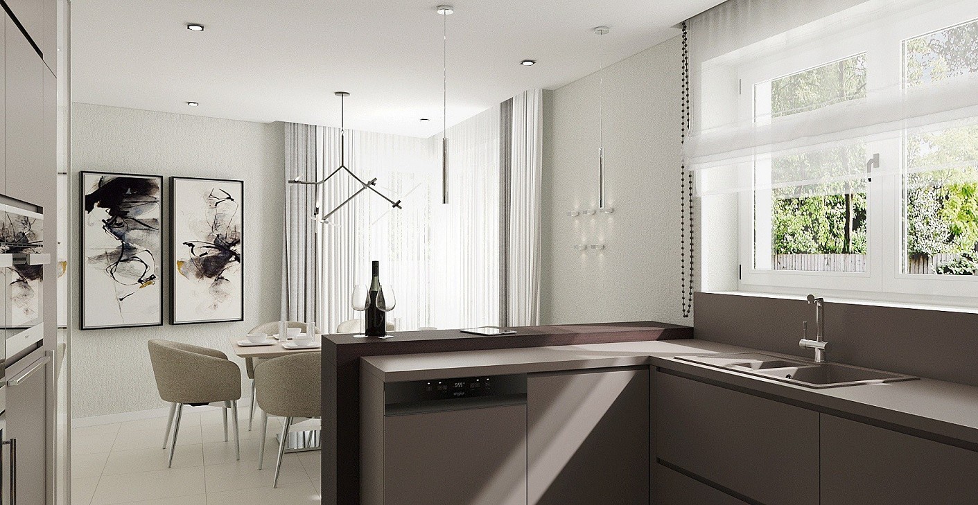 Egy fiatal pár új építésű otthonának belsőépítészeti terveit készítettem el, személyes igényeikre szabva. Kedvelik a barna színt, így ezt a ház nappali és konyha részébe becsempésztem, kiegészítve modern, fiatalos világos szürkés, pasztell árnyalatokkal.