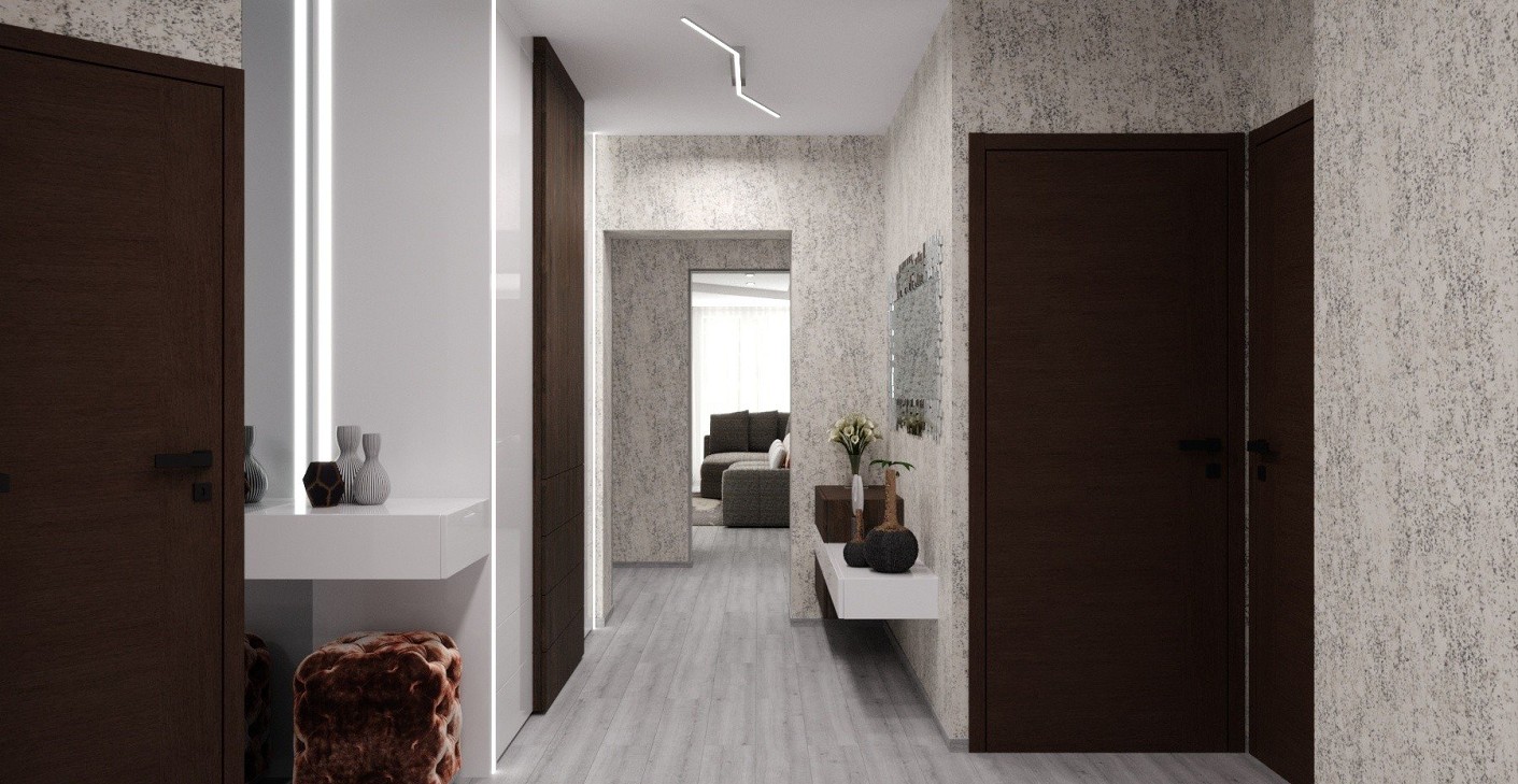 Vidéken élő fiatal házaspár bízott meg , hogy családi házuk belső kinézetét újítsam fel, tegyem világosabbá, otthonosabbá. Két szín kombinációt kértek, az egyikben világos nagy méretű hidegburkolat van lerakva a padló fűtés miatt, hozzá egy elegáns fényes kasmír szürke anyagot használtam, a másik verzióban fa hatású laminált padlólap magasfényű fehérrel lett kombinálva. Nekem személy szerint a melegebb anyaghasználat tetszik jobban, fényes fehér van már mindenkinek. :) A képek végére tettem azokat fotókat, ahol jól lehet látni a különbséget a jelenlegi állapot és a tervezői koncepció között.